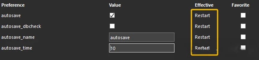 进入Autosave配置界面后,可见4个核心参数。合理配置这些参数,既能保障设计