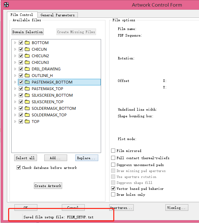 导入模板后,务必仔细核对各Film层的勾选状态与参数设置,避免因模板版本差异或设计变更导致输出错误,保障光绘文件的准确性,确保生产环节顺利推进。